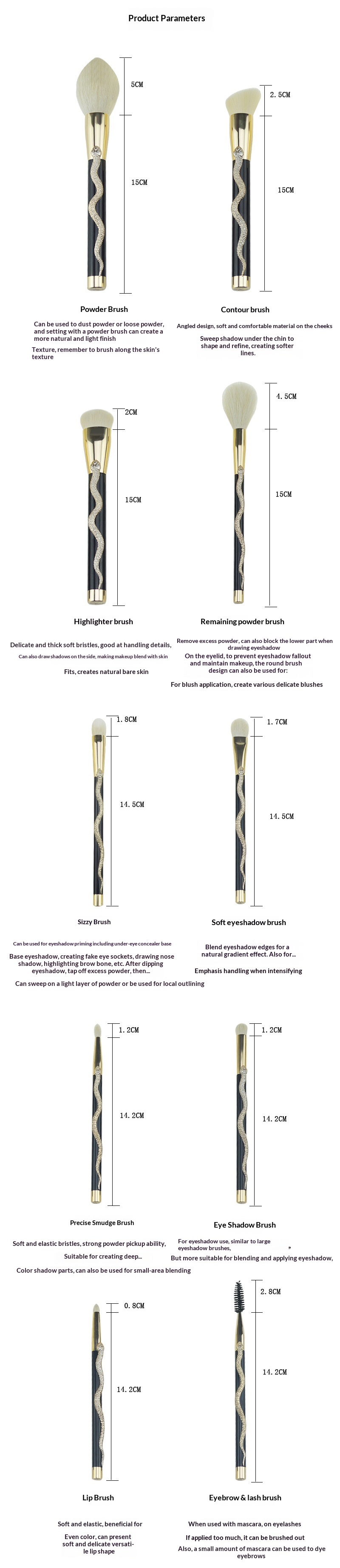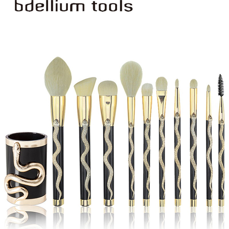 10-Piece Makeup Brush Set with 3D Snake Design, Professional Cosmetic Tools for Eyeshadow, Concealer, Blush, and Powde